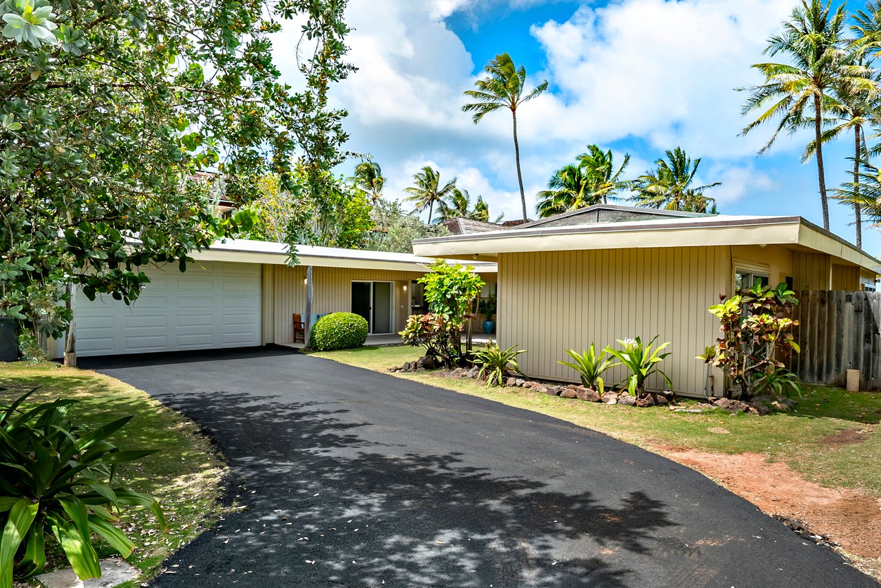 Beach Breezes, Kailua Style. Situated down a private lane on sprawling beachfront parcel of 21,788 square feet, rests this 5 bedroom, 3 full bathroom and 1 half bathroom beach home which exudes pure rest, relaxation and fun! Swim, sun and recharge at your back door along the famed sandy shores of Kailua Beach, repeatedly one of the top-rated beaches worldwide! This peaceful home offers open-air living, dining and breakfast room areas seamlessly connected to a wraparound lanai complete with tiki bar creating a true sense of indoor-outdoor island living. Graciously configured around a center courtyard, each bedroom suite enjoys garden and/or unforgettable coastline views. The possibilities are limitless for this prime beachfront parcel; zoned R-10 and offering 93.71 linear feet of beach frontage complete with charming beach house! Fabulous!